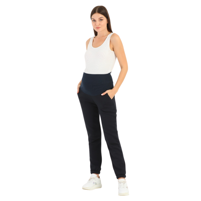 Donji dio trudničke trenerke izrađen je od mekane i elastične tkanine koja se prilagođava rastućem trbuhu. Visoki, udobni pojas pruža laganu potporu bez stezanja i pritiska. Materijal je prozračan, nježan prema koži i idealan za cjelodnevno nošenje. Krojen je tako da omogućava slobodu pokreta i maksimalnu udobnost. Savršen za šetnje, odmor kod kuće ili svakodnevne aktivnosti.